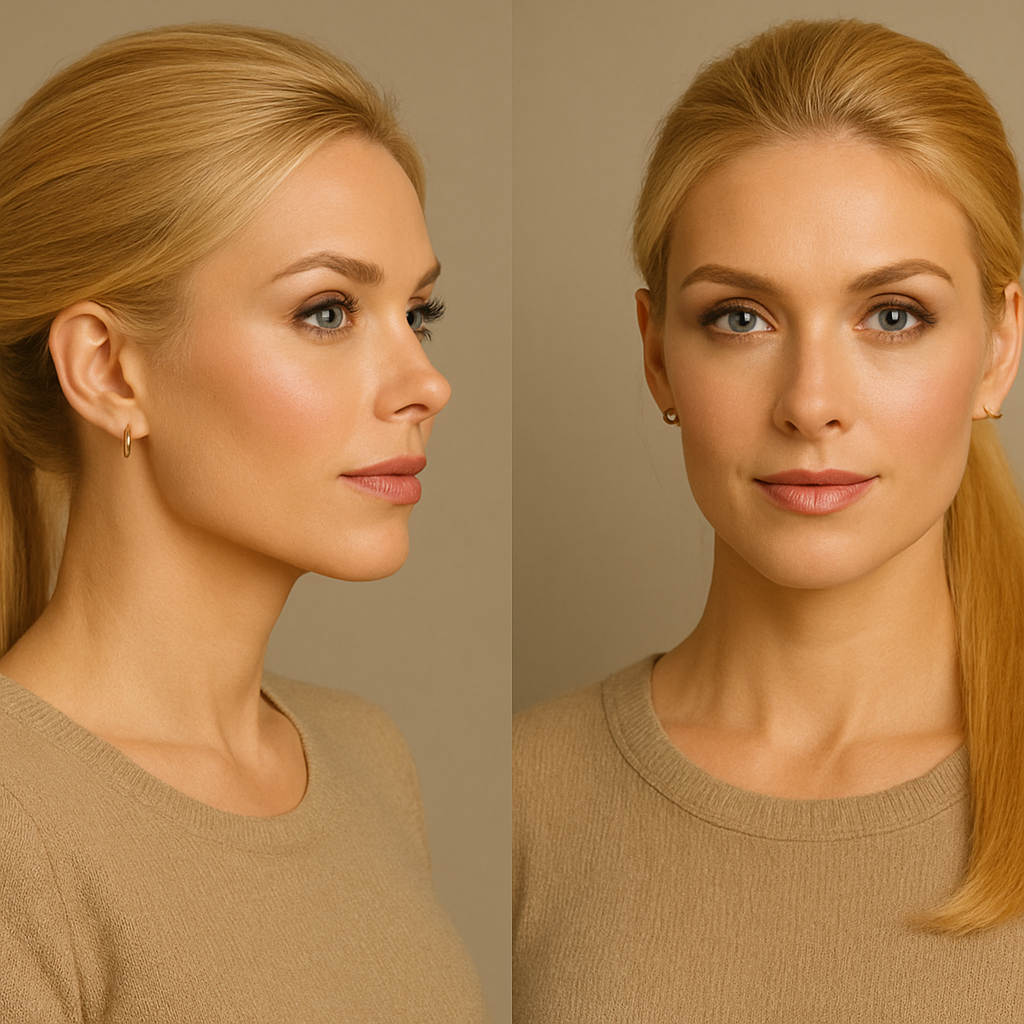 Įkelk 2 savo veido nuotraukas iš tokių kampų kaip parodyta pirmame paveiksliuke. Puikiai tinka tiek asmenukės, tiek kitų darytos nuotraukos.